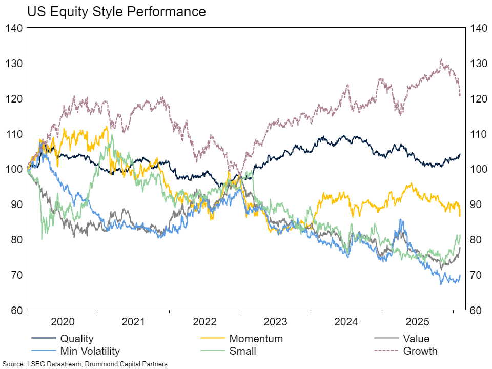 Weakness in software has coincided with some reasonable sector rotation within the US market. Growth as a style has underperformed the overall index by around 10% since late last year, though periods of reversion of a similar magnitude are common and the style has thus far avoided a more meaningful period of underperformance such as that in 2022. Quality as a style has started to outperform, which is somewhat unusual given the correlation between growth and quality we have seen for a number of years. Growth’s ugly, poor cousin, value, has of course outperformed during this period, as have small cap equities. Overall, the rotation we have seen isn’t really anything out of the ordinary, similar things happened in both 2025 and 2024. The key question of course is whether it continues.