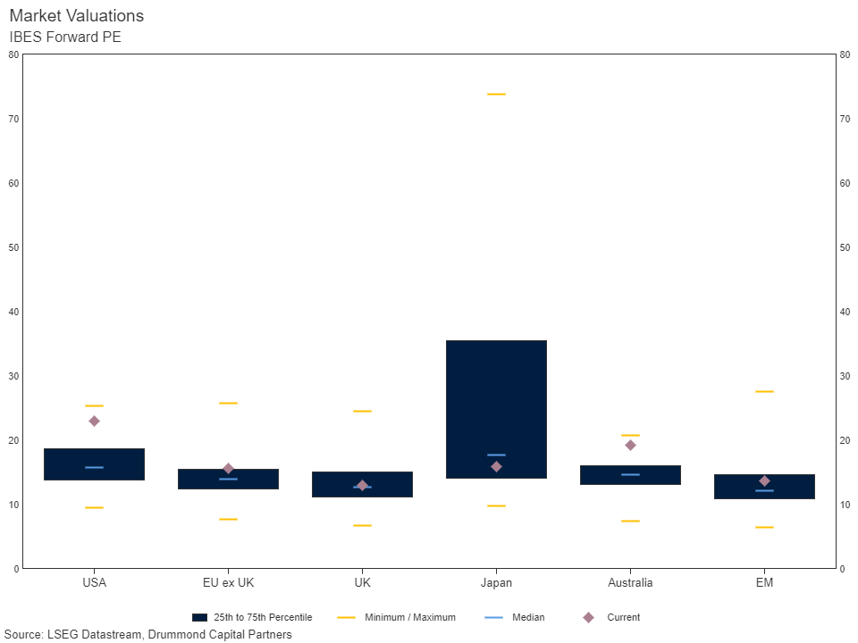 The positive reform story sits amongst a backdrop of relatively attractive valuations for the market as a whole. Japan’s forward PE is trading much lower than the US or Australia, below its historic median and around the same ratio as Europe, which lacks reform or growth prospects. Meanwhile, investors are still generally underweight Japanese equities in global equity mandates.